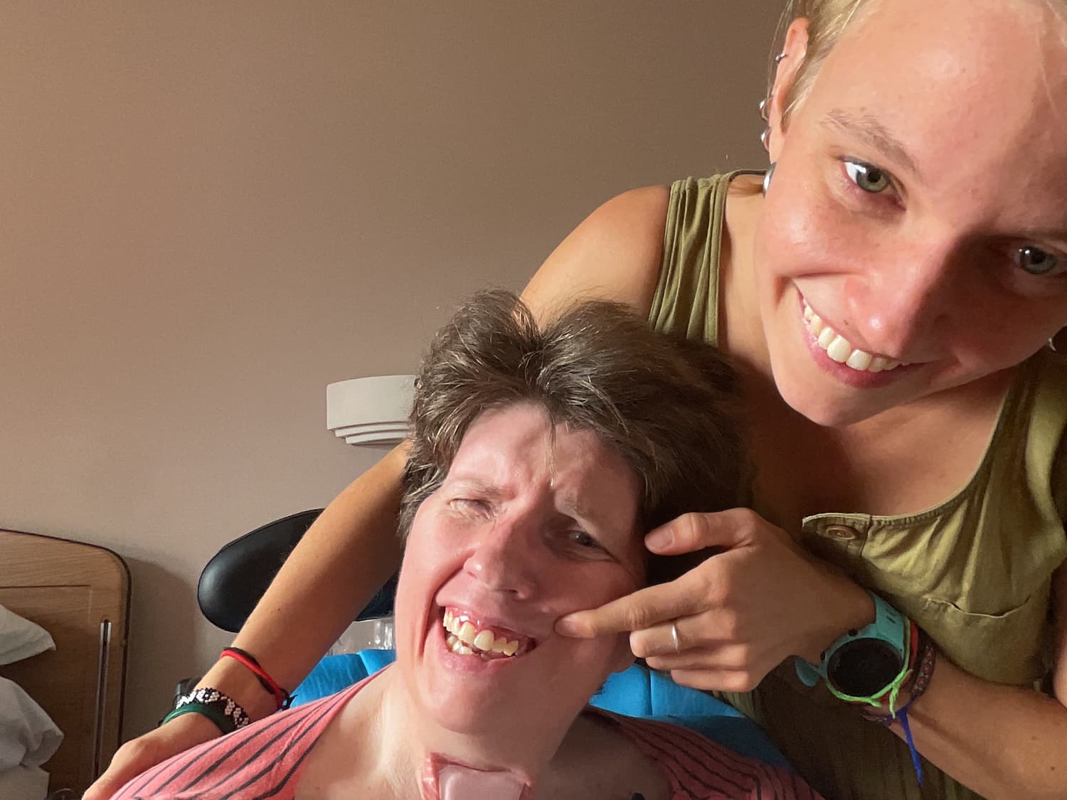 This is my eldest daughter,Alana helping me smile because post-stroke my face muscles have atrophied and I have what they call resting-bitch face❣️ 🜁