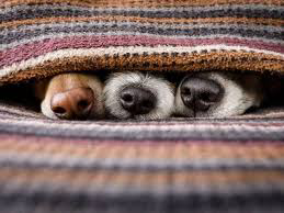 These little pooches look very COMFORTABLE hiding in this rug with just their noses peeking out.