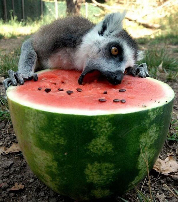 This little guy would really like to take a BITE of this watermelon. “Better you can’t eat the whole thing!”