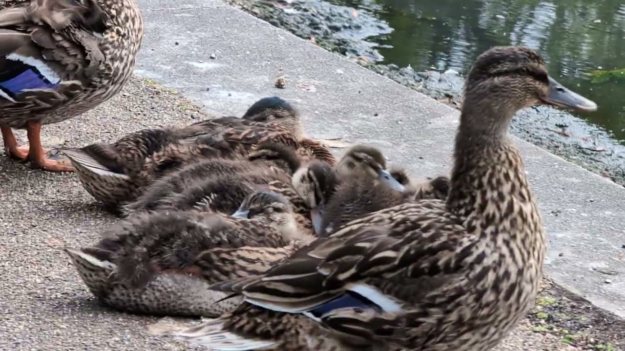There was a cool morning breeze and the ducklings were cuddled together keeping one another warm.