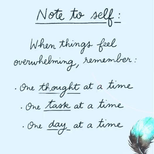 Totally agree - I often say that to my ateqm when work seems overwhelming. It applies equally to all other situations too.