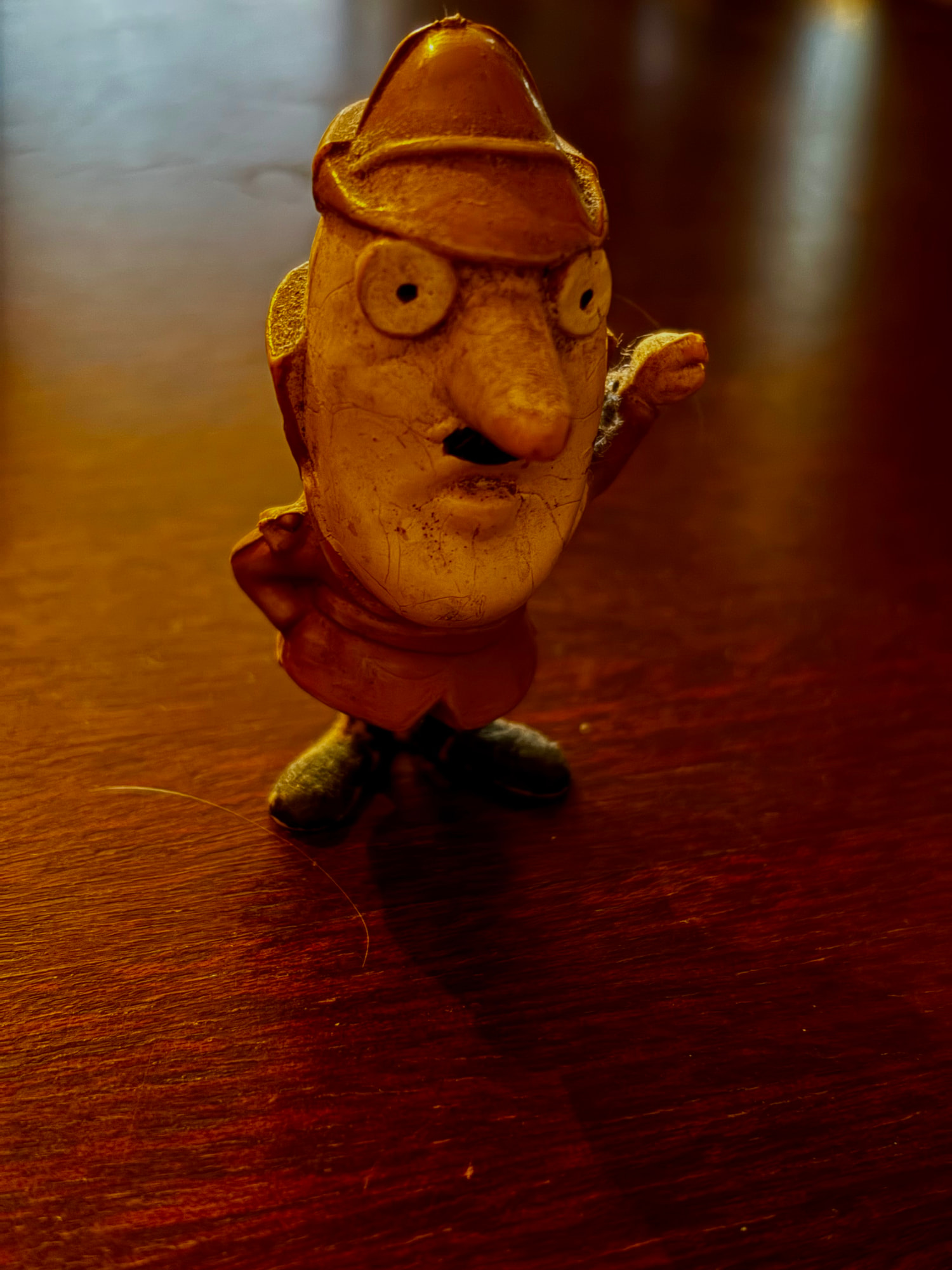 I have had this Inspector Clouseau figurine ever since I was a child. It has travelled all around the world with me for the last forty years. Wherever I land, I display it unostentatiously, as it is a talisman that reminds me how absurd life is. The Pink Panther series being something I re-watch often and Peter Sellers one of my favourite all time performers.