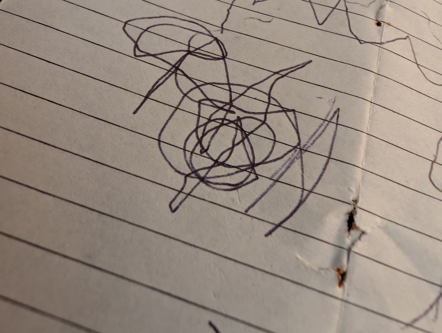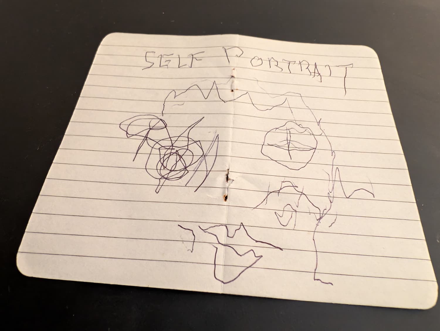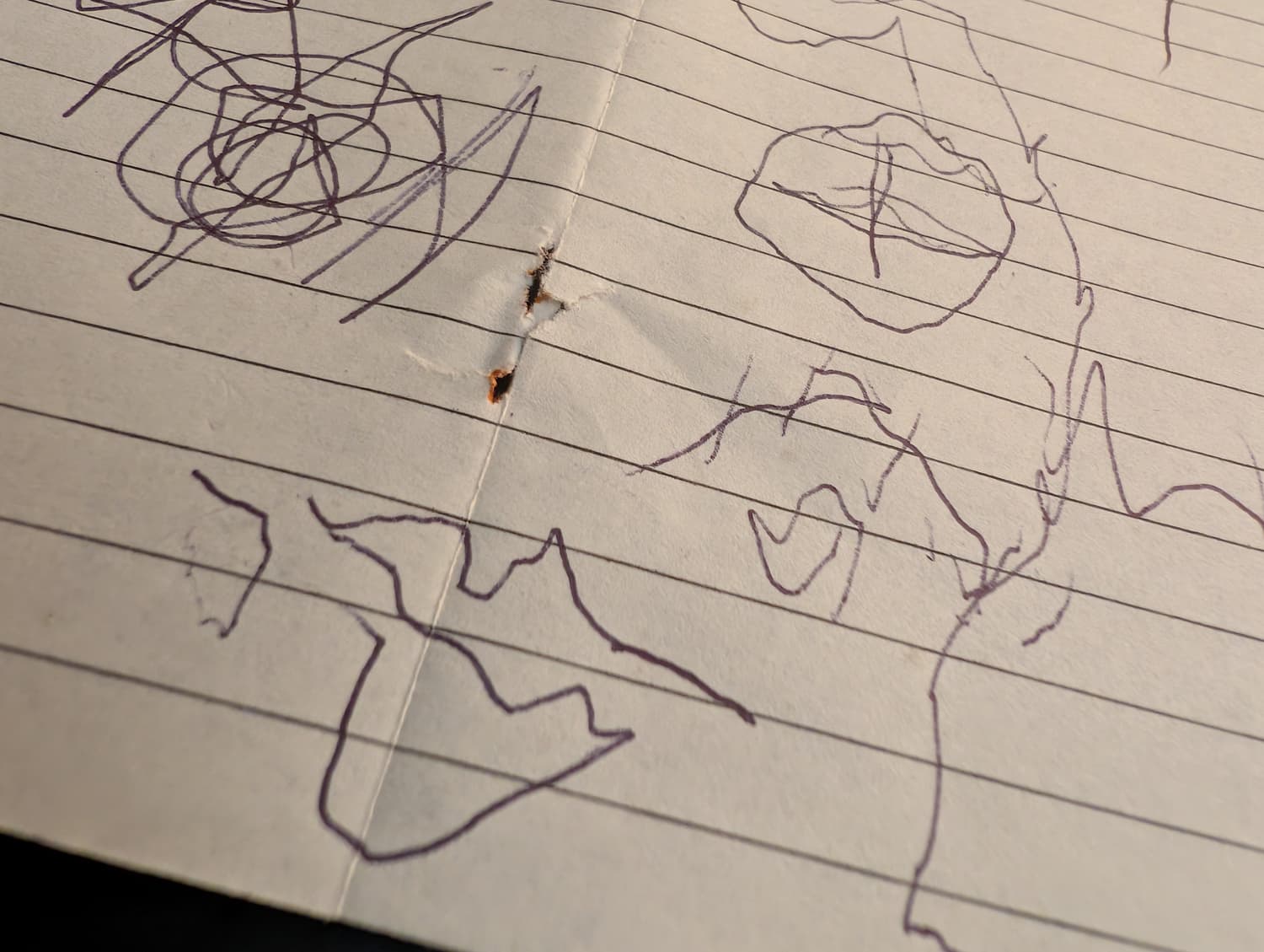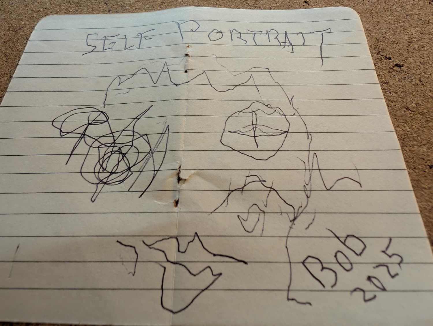 Black biro and paper ripped from old notebook.