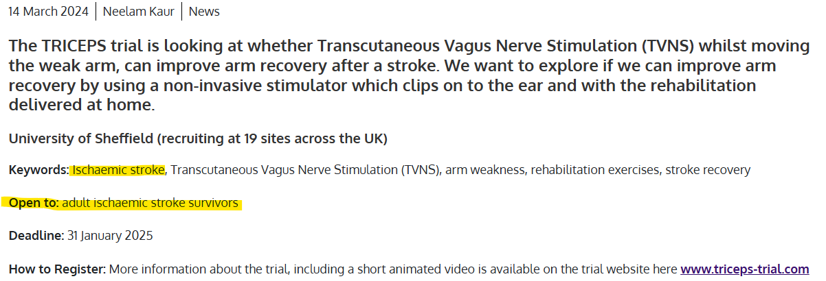 Also, the below article is on the stroke association website and has details about volunteering for the trial.