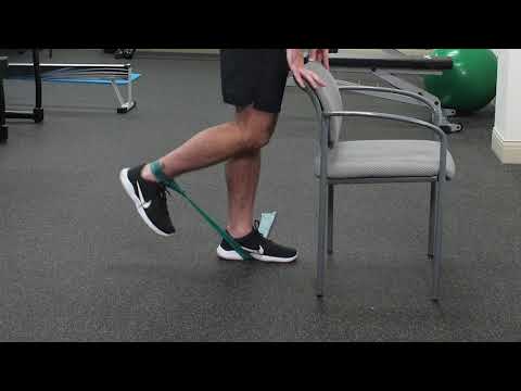 This a standing leg curl that can be done at home, again with the use of resistance band.