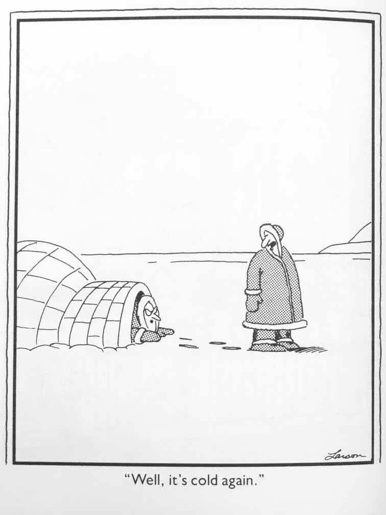 Margaret looked up and said in her best deadpan, “Bert, what’s different? It’s hanging down today, it was hanging down yesterday, it’ll be hanging down tomorrow.”