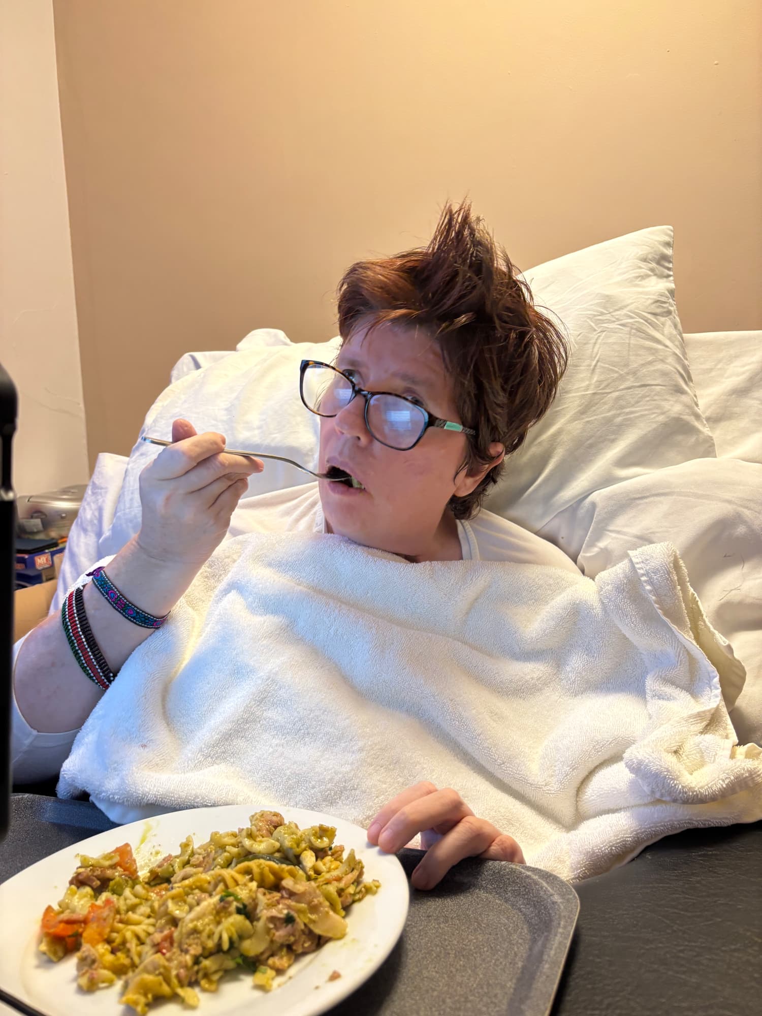 Got home and spent hours daily with kids toys rehabilitating my arm and hand so much so was only two appointments at nuero rehab . I know how lucky I am but if there is movement in the toes on command with some support I hope the leg gets mobility back, the arm again hope if yawning is causing some sort of spasm would suggest there is again something to be worked with. Wishing you both all the best and take time with rehab and accept every offer of help, I know this will be frustrating in places but reset and don’t give up. P.S. one of my best tools was a 99p kids spikey ball which lit up when I dropped it and still have Spikey MIkey and use him every day.
