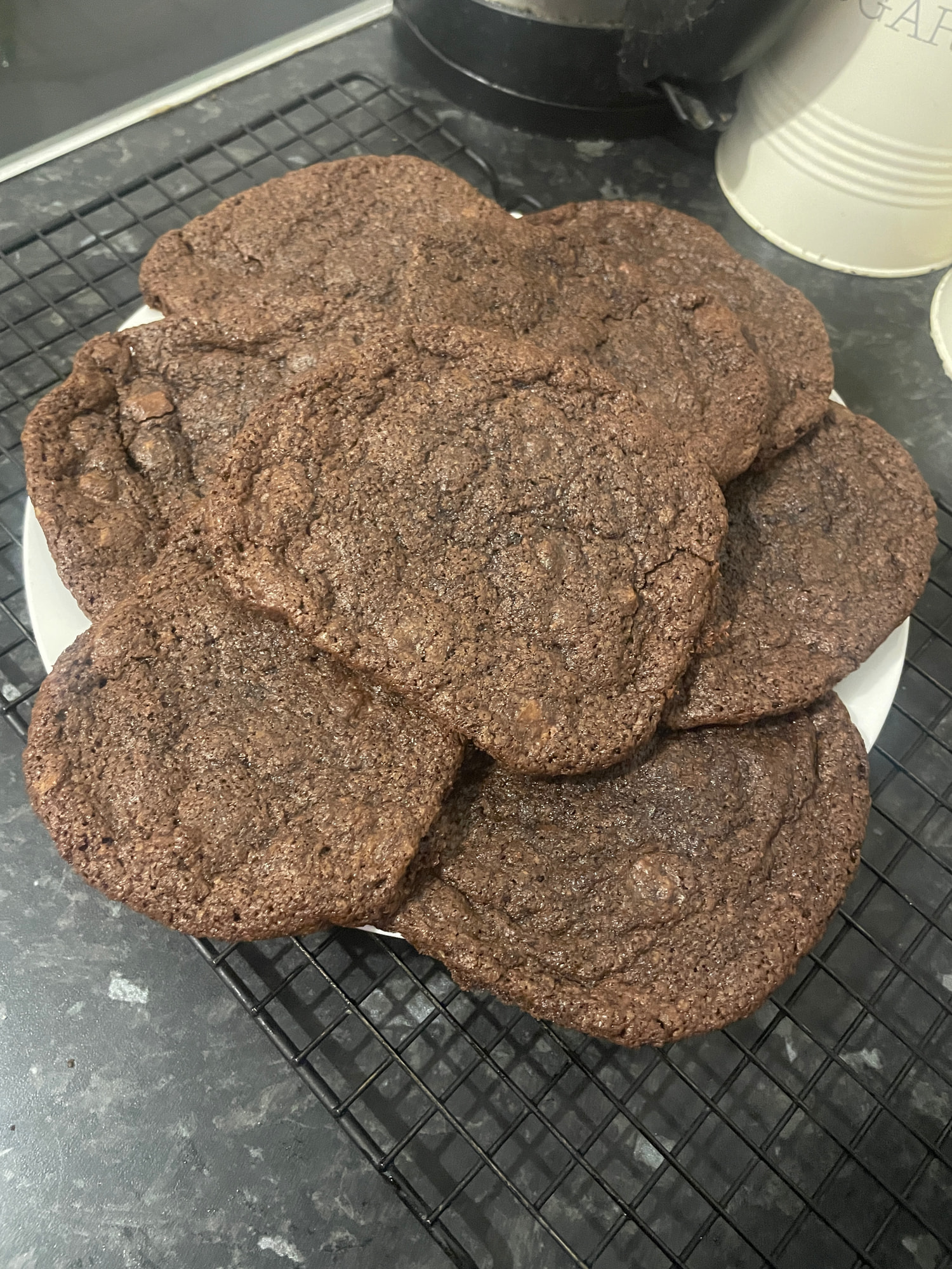 Tonight however I have managed to not burn anything as I did not make dinner but did manage to make some enormous double chocolate chip cookies and they were absolutely delicious